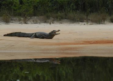 Formerly known as the Royal Amazon Lodge, the Agua Boa Amazon Lodge is located on a small clear water tributary of the Amazon perfectly suited for peacock bass.The Agua Boa is a crystal clear with a white sand bottom. Imagine a small river flanked by Varzea flood forest and Gallery forests still in pristine shape with all of its great wildness still intact. The crowns of many of the hardwood trees in the Gallery forest reach heights of 200 feet and all of the species are still present. It is not uncommon to find beaches filled with the tracks of the endangered Amazon River turtles, tapir and even jaguar. Nothing could be more spectacular for an angler than the return ride to the lodge after a great day of fishing through meandering bends of this great watershed as the forest comes to life each evening.